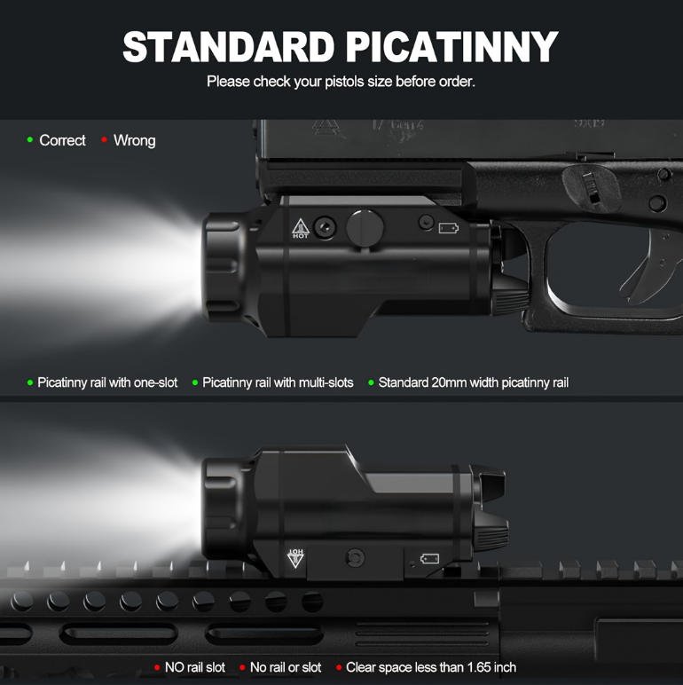 HL-20 Pistol Light – Compact Rail Mounted Handgun Tactical Flashlight – 400, 1000, 1500LUMEN Upgrade LED Light – Rail Locating Keys for Picatinny