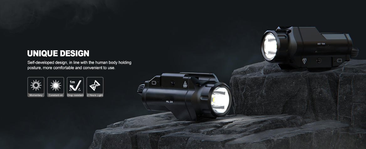 hl 20 pistol light compact rail mounted handgun tactical flashlight 400, 1000, 1500lumen upgrade led light rail locating keys for picatinnyHL-20 Pistol Light
