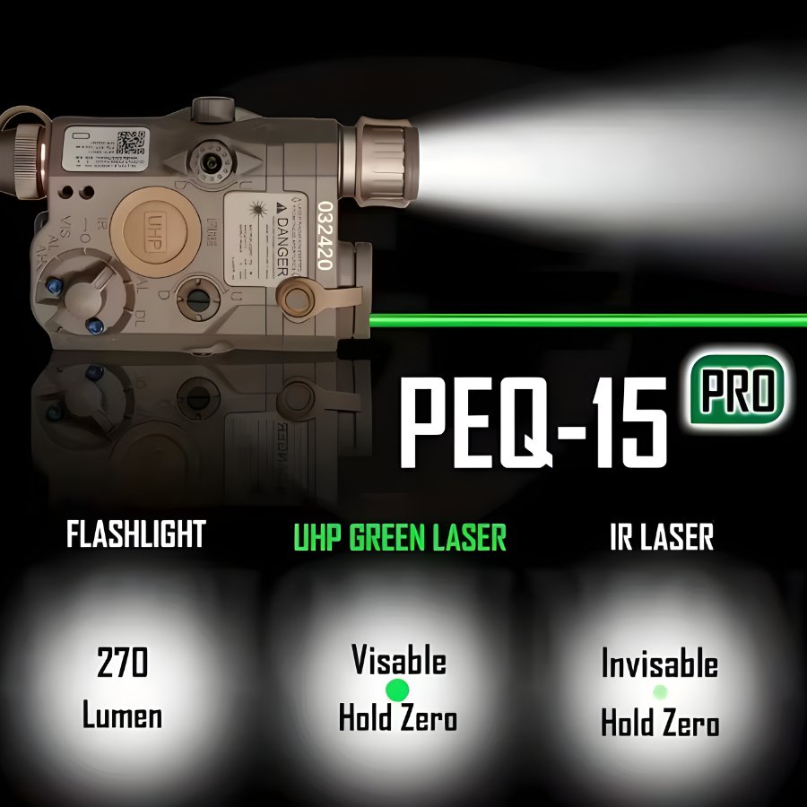 Tactical PEQ15 Outdoor Flashlight, Laser Aiming Indicator. Red Dot Green Dot Laser, IR Fill Light, LED White Light, IR Laser, PEQ Outdoor Lighting, Sturdy Design, High Toughness Nylon Material, Used for Outdoor Fishing, Outdoor Sports